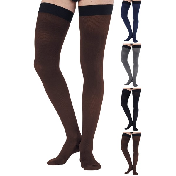 Absolute Support - Thigh High Compression Socks for Men 20-30 mmHg with Grip Top Fim Suppport - Mens Graduated Compression Stockings Hose for Improving Circulation- Brown, Small