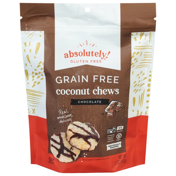 Gluten free. Certified gluten free.. Vegan. Dairy free. Made in a peanut free facility. No eggs. Real wholesome, delicious. Individually wrapped. Free from doesn't have to mean free from flavor. Perfect for satisfying between meal cravings or for an on-the-go snack, these are coconut chews that lead with flavor and are absolutely real, wholesome, and delicious.. (at)AbsolutelyGF. Also try our: Blueberry, Cranberry and Key Lime flavors! Product of USA.