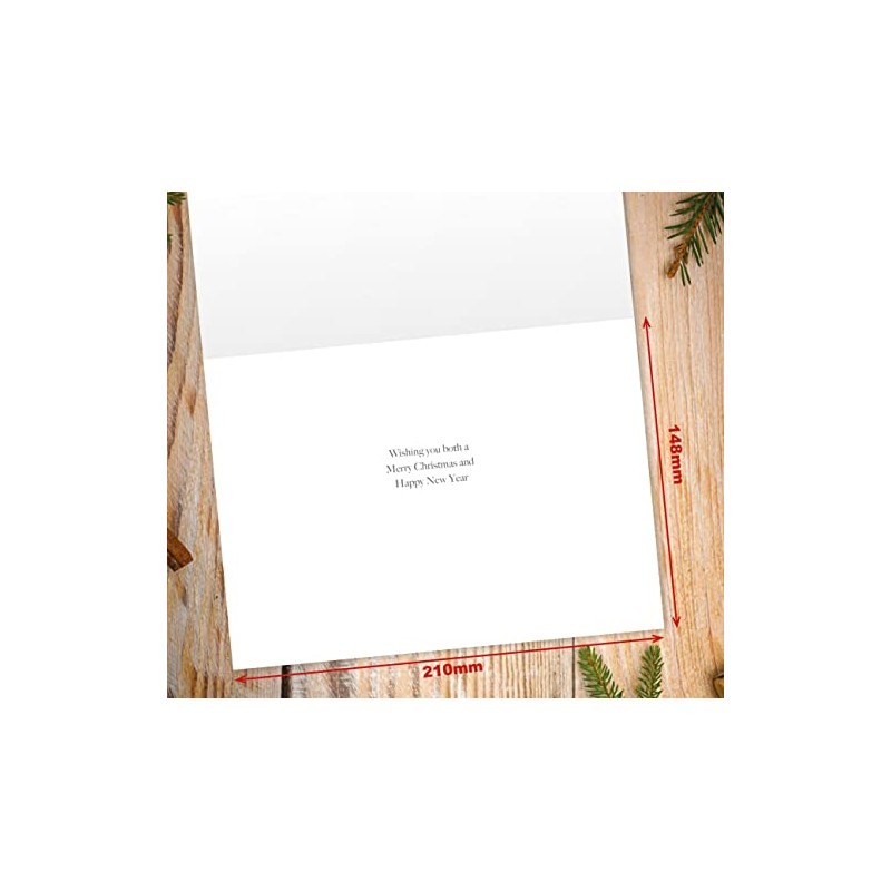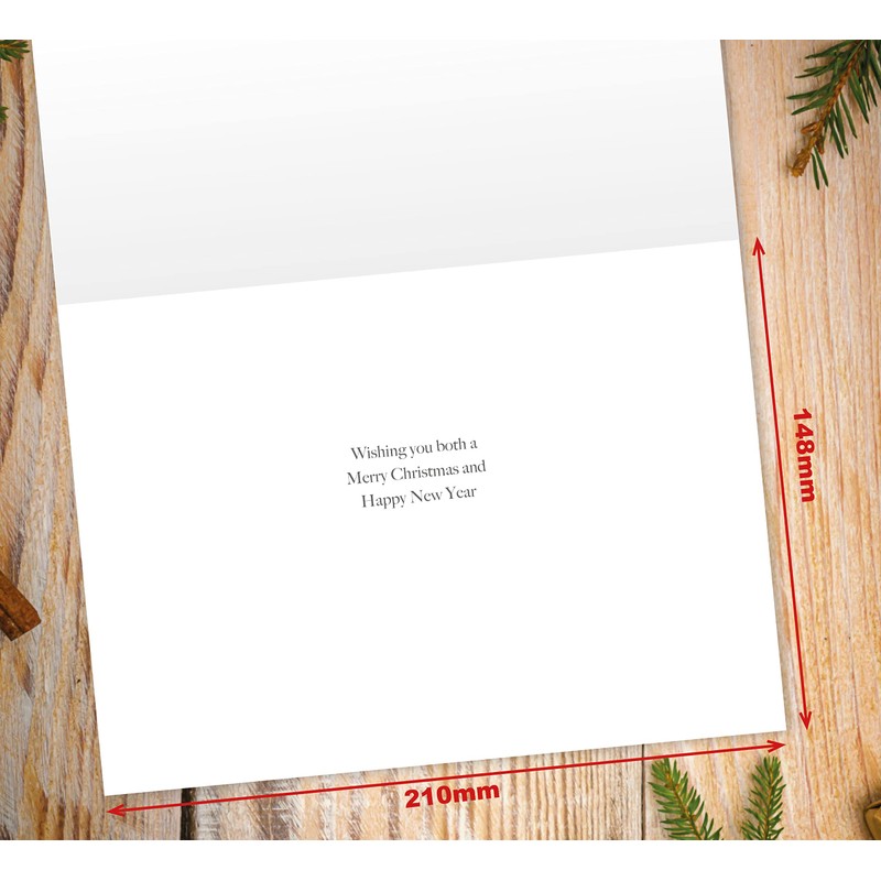 - MADE IN THE UK – Designed, printed and packed in the UK, our cards are made from board which is manufactured in Europe. Message inside: Wishing you both a Merry Christmas and Happy New Year.
