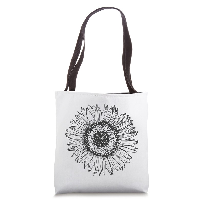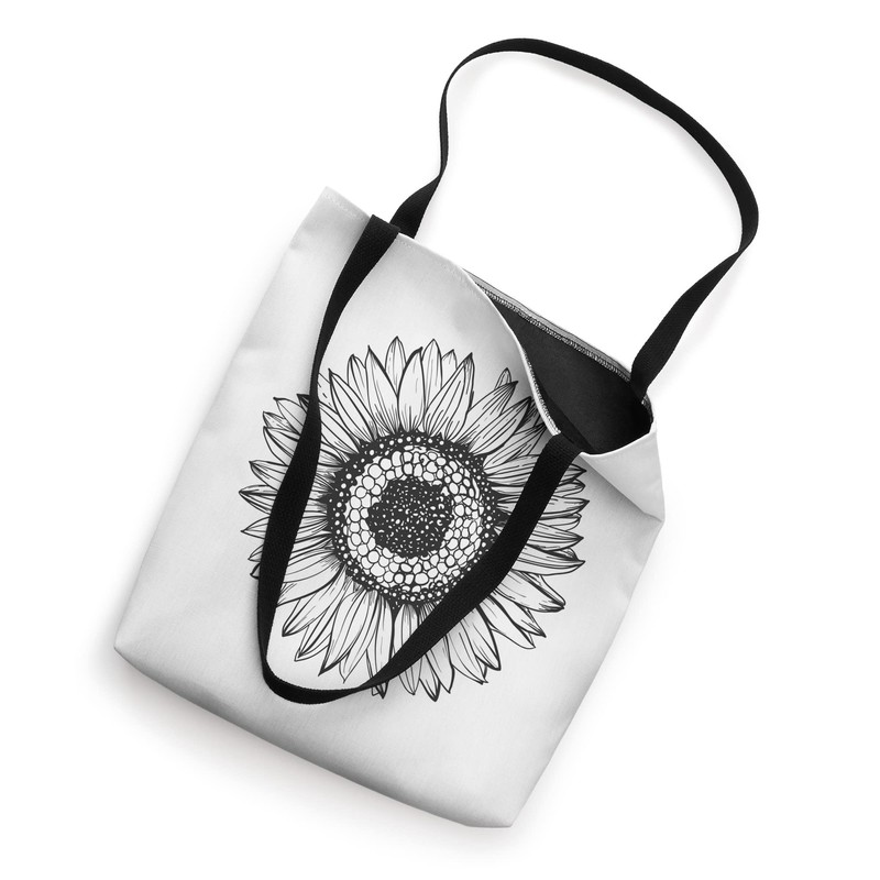 Abstract Black And White Boho Sunflower Minimalist Line Art Tote Bag