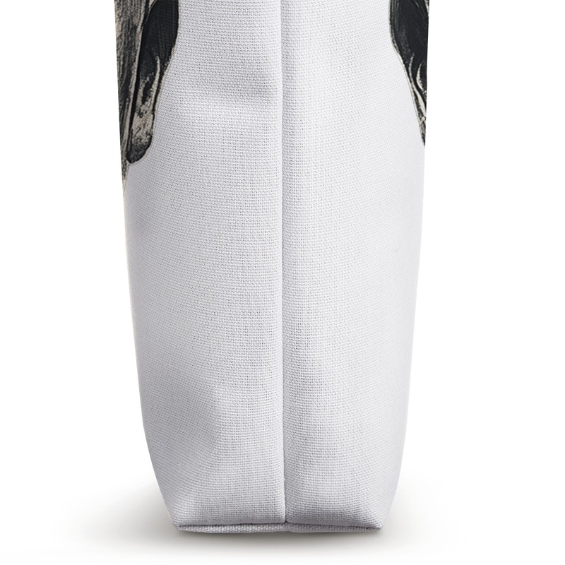 - 16” x 16” bag with two 14” long and 1” wide black cotton webbing strap handles.