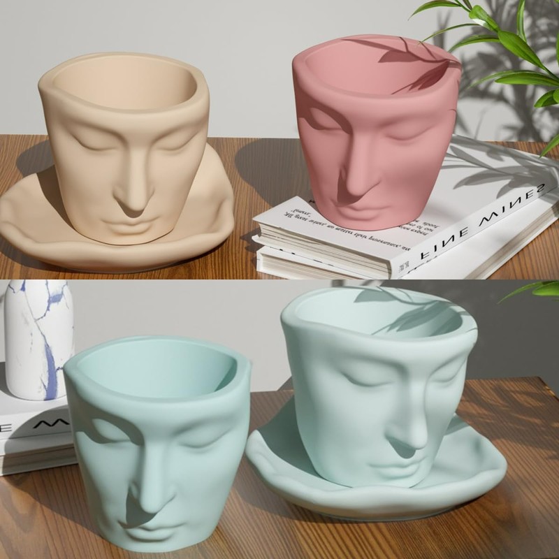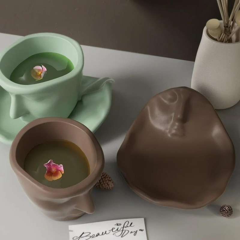 Abstract Face Candle Jar Mold for Concrete Succulent Planter Silicone Molds Handmade Candle Making Mold for Storage Cup Resin Expoxy Moulds DIY Flower Pot Plaster Molds (Cup and Coaster)