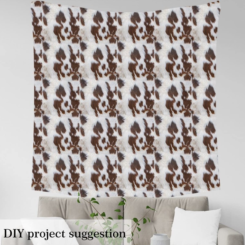 Abstract White Brown Cow Fur Print DIY Fabric by The Yard for Adults Craft Lovers,Farm Cowhide Texture,Decorative DIY Fabric for Upholstery and Home Accents,1 Yard,Rustic Farmhouse,Not Really Cow Fur