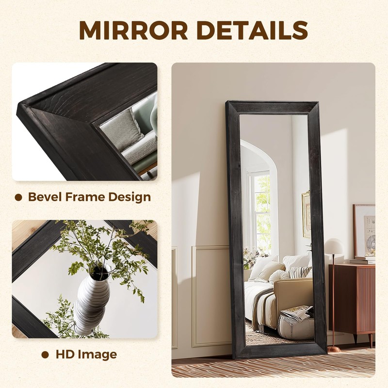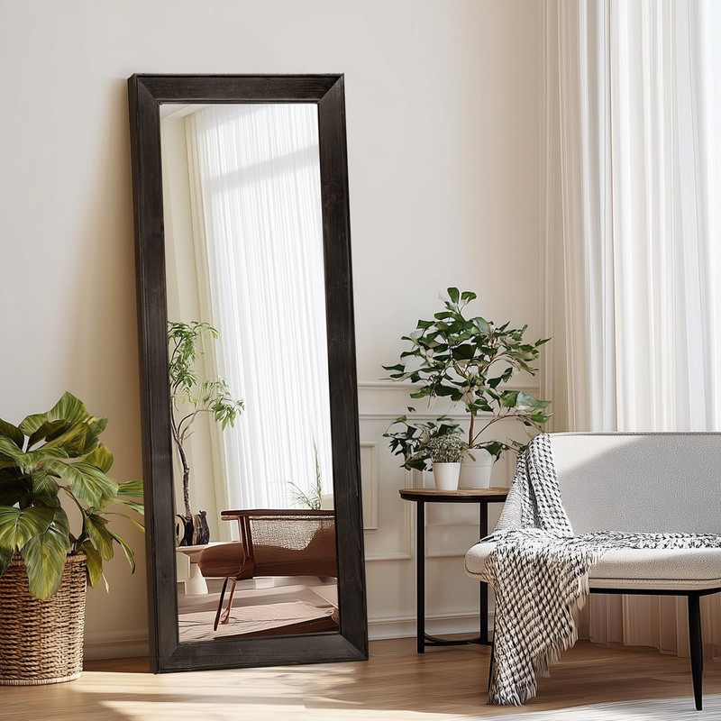- Solid Wood Frame Durability: Crafted from premium solid wood, this full length mirror features a clean rectangular shape that ensures structural stability and timeless appeal. The wood grain offers warmth and natural beauty to modern or rustic interiors