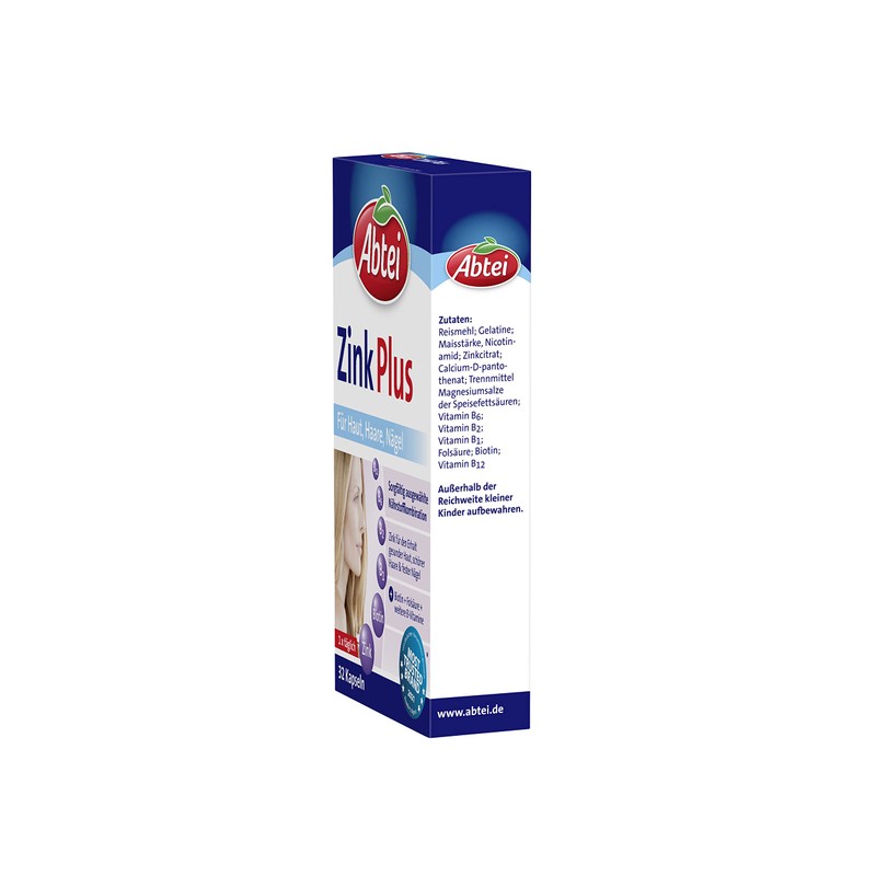 Abtei Zink Plus - spezielle Nährstoffkombination für gesunde Haut, kräftiges Haar und feste Nägel - mit Biotin und Folsäure - 1 x 32 Kapseln , 32 Stück (1er Pack)