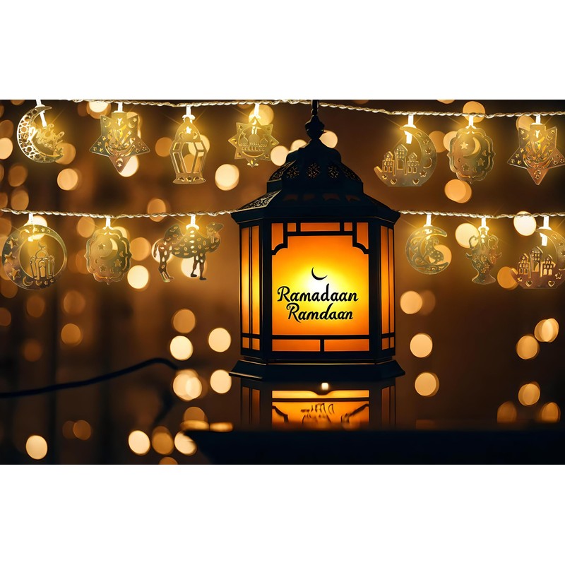 - Eid Mubarak Decorative String Light: you wil get 1set ramadan LED light lamp, including 10 different patterns of Ramadan Mubarak elements combining stars, moon, castles,camel, lanterns, star crescents and pentagram, etc. Warm white color string light, increase the festive atmosphere.