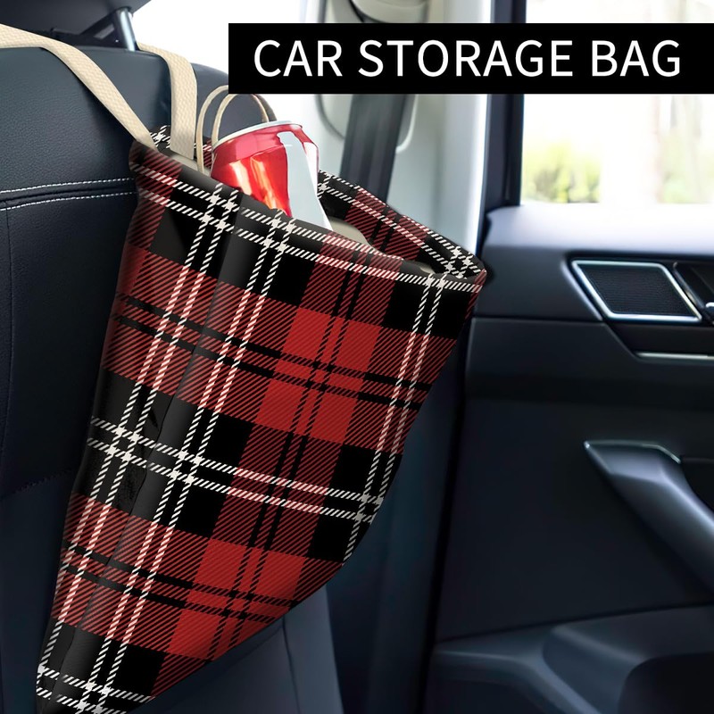 ABUIFDK Car Trash Can, Hanging Car Organizer and Storage Bag, Trash Bin for Vehicle, Travelling, Camping Black and Red Checkerboard