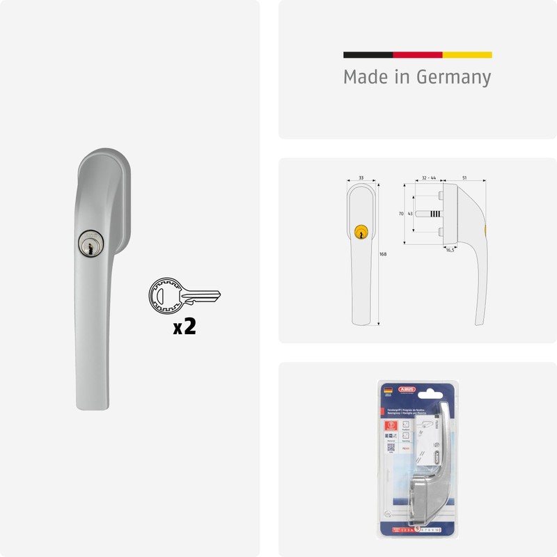 - For use on aluminium, wooden or plastic windows thanks to the individually adjustable square spindle