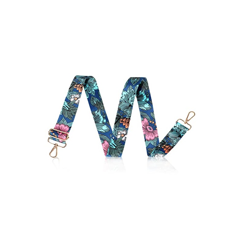 Abuyall Wide Strap Replacement Guitar Style Multicolor Crossbody Handbag Strap Floralblue-gold