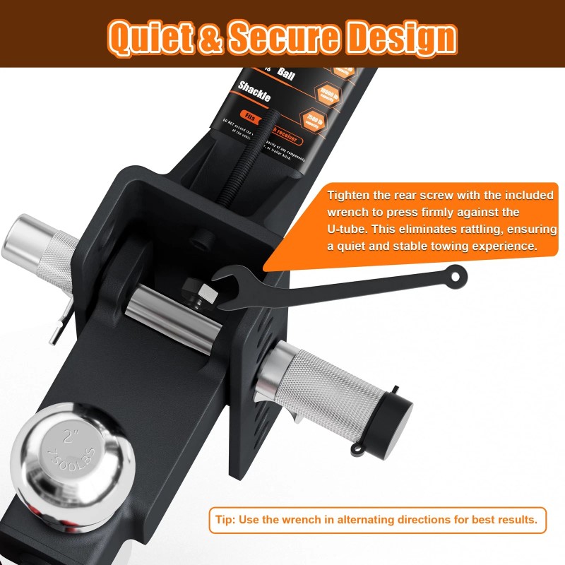 • Double Security Lock:Features a dual-locking pin for hitch ball adjustment and hook security