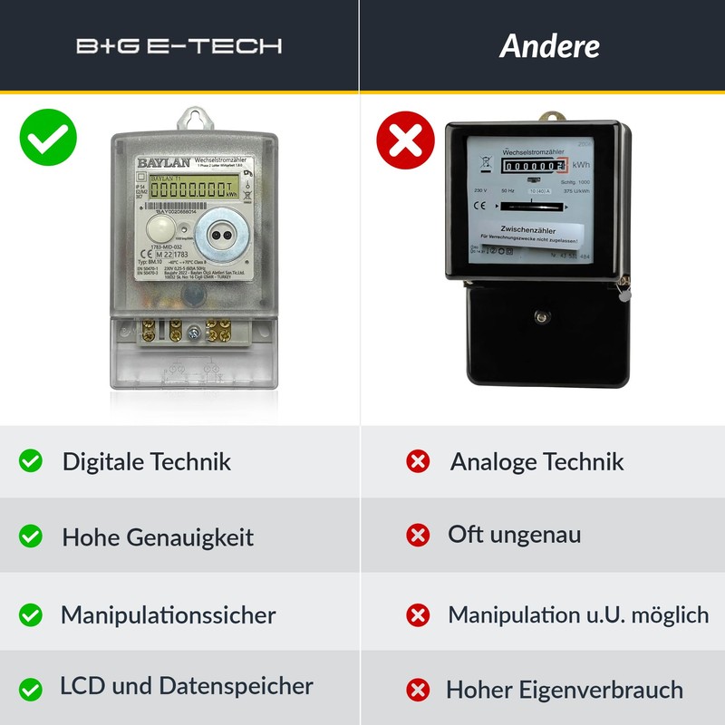 - MID-certified and standards: Meets the MID Directive 2014/32/EU as well as CE, EN 50470-1, -3 and IEC62053-21:2003 standards for maximum precision and safety. The easy-to-read, large display ensures easy operation and precise data