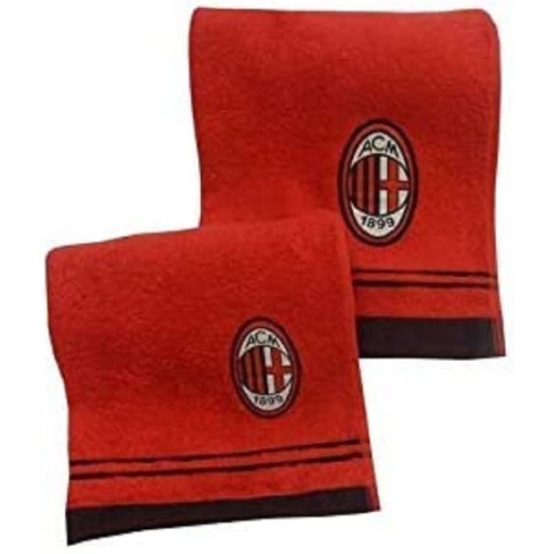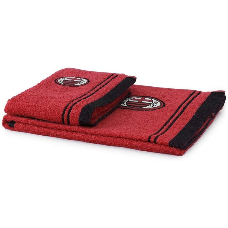 AC Milan Terry Towel and Guest Set, Cotton, Rosso/Nero, 100X60X1 Cm