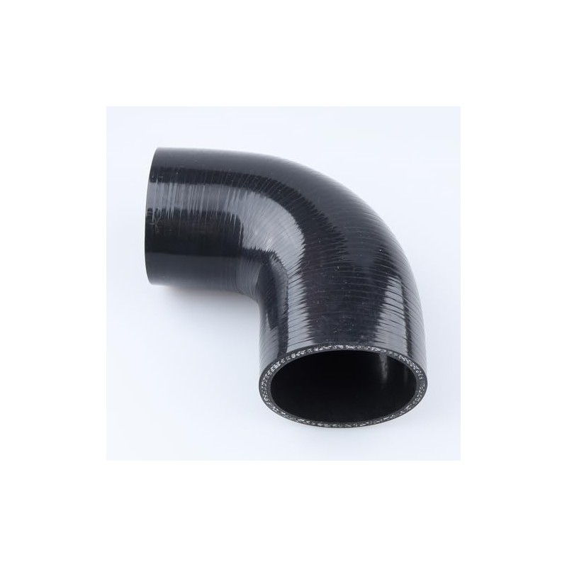 - No logo, 90 degree Elbow Reducer, ID 2.5" to 2.35" (63mm to 60mm), Leg Length 3.5" (90mm), Made of High Temp Reinforced Silicone