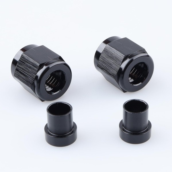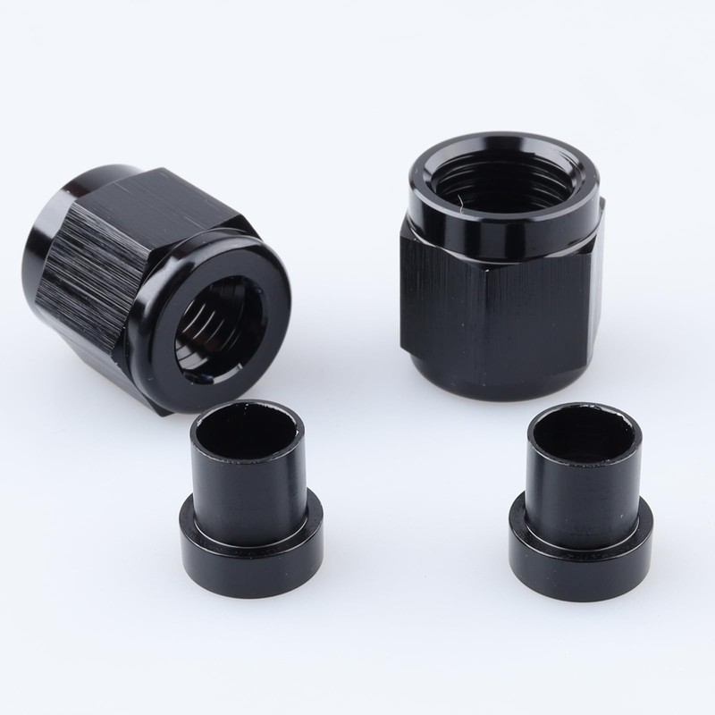 AC PERFORMANCE AN4 Black Aluminum Hardline Fitting -4 AN Female Tube Nut and Sleeve For 1/4'' (6.35mm) outer diameter alloy Tube Hose Line Fitting, Pack of 2