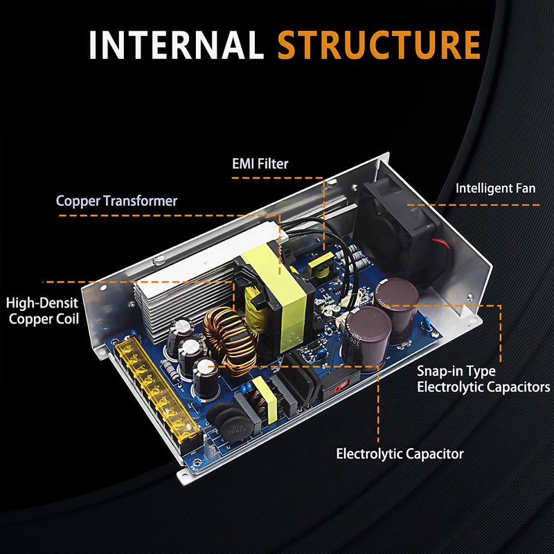 - 【High-Quality Components for Excellent performance】Built with oxygen-free coils/transformers, EMI filter capacitors, and premium chip designs, our converter guarantees stable power performance and reliable operation. Featuring multiple protection functions, including short-circuit, over-current, over-load, and over-temperature protection, it ensures excellent performance and safety, giving you peace of mind while using your 12V power supply.
