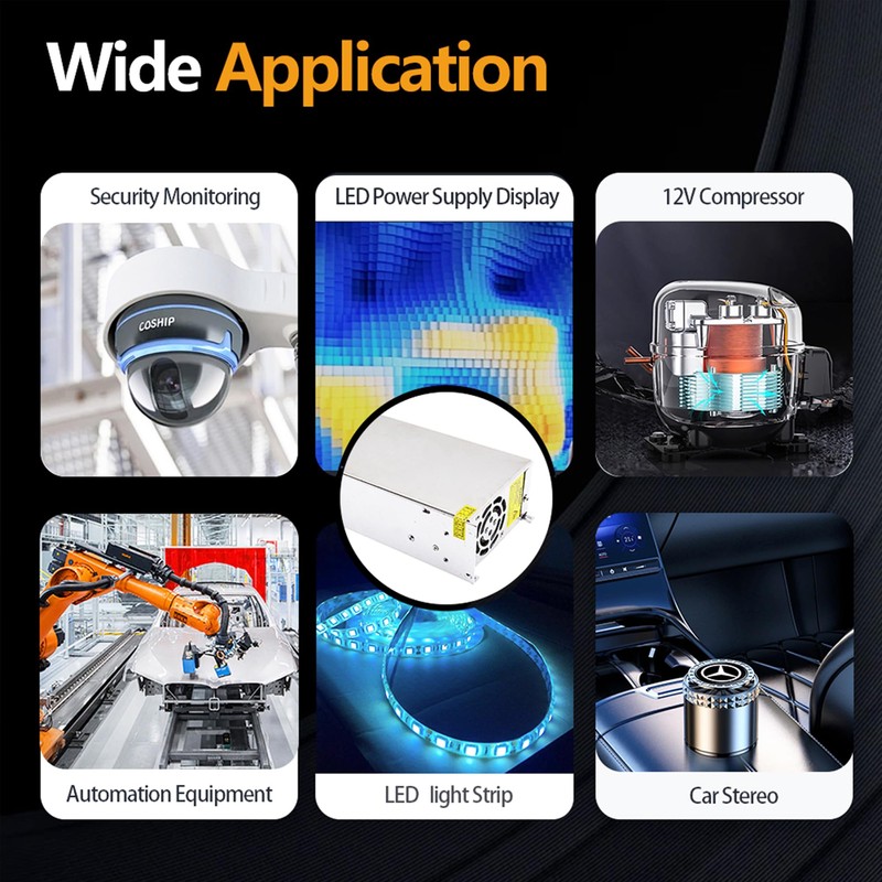 - 【Intelligent Heat Dissipation for Long-term Durability】For long-lasting durability and reliability, our product boasts intelligent heat dissipation features. Integrated with a cooling fan, ventilation holes, and a temperature detector, it intelligently adjusts the fan speed to effectively reduce the PSU temperature. This not only ensures optimal performance but also extends the lifespan of the AC to DC power converter.