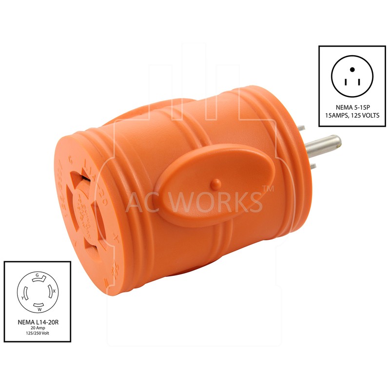AC WORKS [AD515L1420] 15Amp Household Plug NEMA 5-15P to Generator 4 Prong 20Amp L14-20R (Two hots bridged)