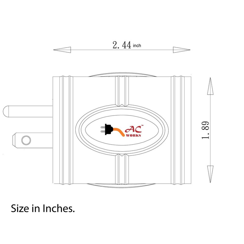 AC WORKS Locking Adapter Household 15Amp 5-15P Plug to Locking 20Amp L5-20R Female Connector (Compact)