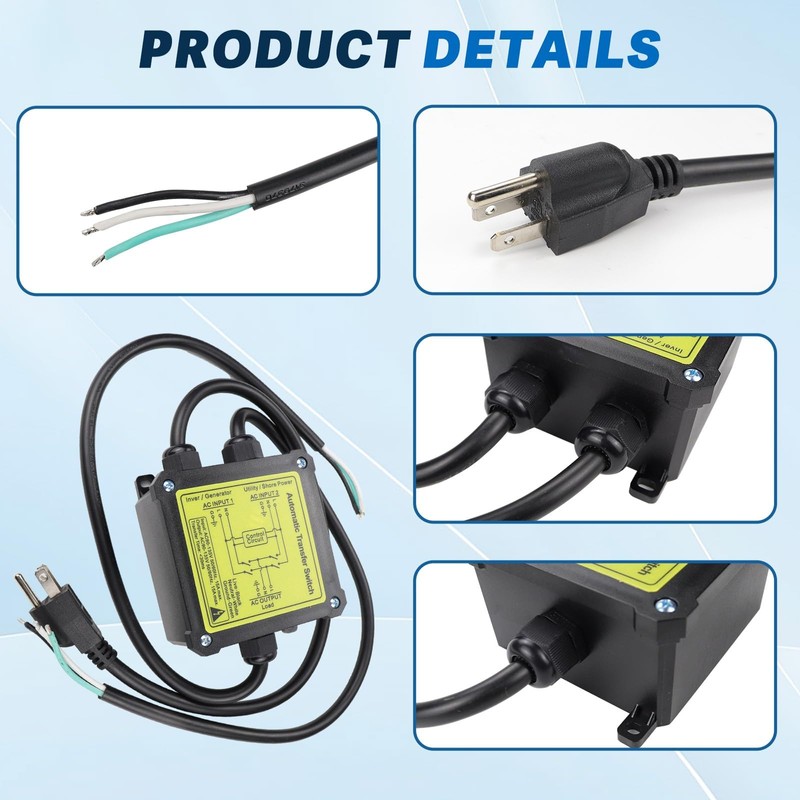- The 19-inch long (0.5 meters) cables, featuring a US standard NEMA 5-15P 3 prong plug for AC INPUT 1 and 14AWG (2.08 square millimeter) x 3 cores for AC INPUT 2 and AC OUTPUT, make installation a breeze. Benefit from reliable power switching today!
