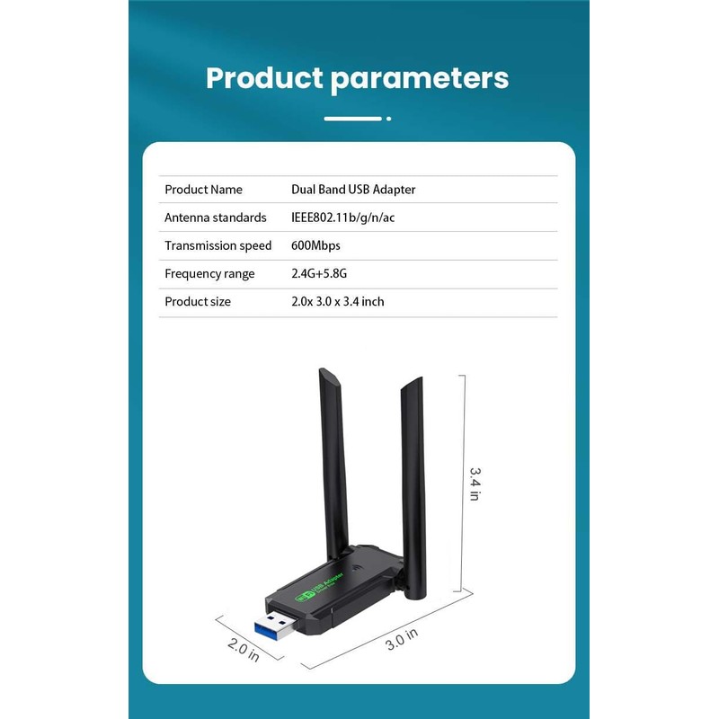 AC600Mbps Dual Band High Gain Antenna 2.4GHz/ 5GHz Wireless Network Adapter for Desktop PC,Wireless USB WiFi Adapter for PC,Supports Windows11/10/8/7/XP.