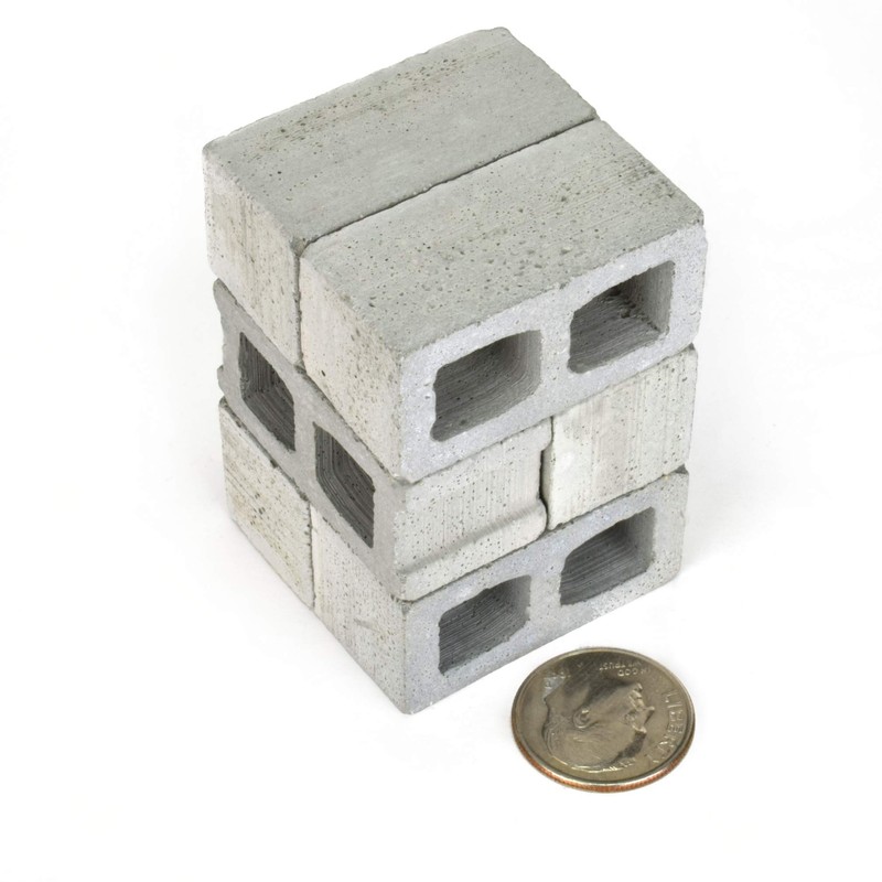- DESIGNED WITH ACCURACY – These miniature blocks are made of real cement. They are 1/12 scale, measuring 1.2” x .6”. Their wall thickness is also to scale. They are undoubtedly the most accurate scale miniature cinder block available.