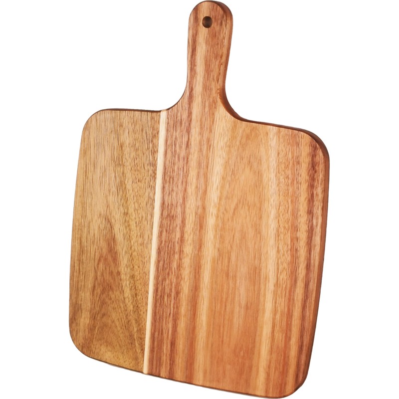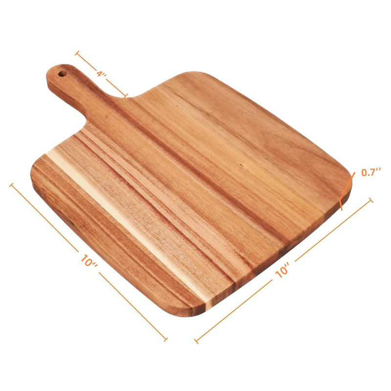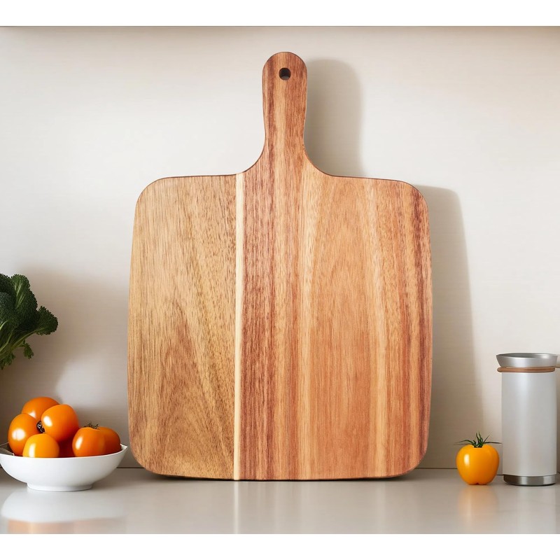- Ergonomic Handle - The Acacia wooden cutting board features a non-slip wooden handle, providing a comfortable grip while transferring chopped ingredients to the cooking pot. Using the practical handle hole, you can hang the cutting board on the kitchen walls, which saves you a lot of cabinet space