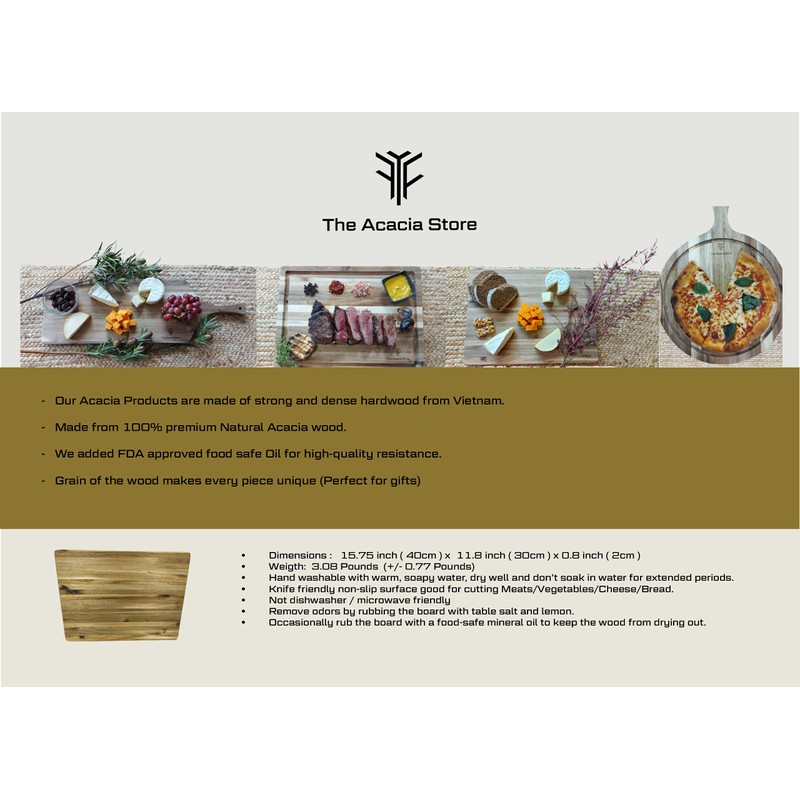 Acacia Wood Rectangular Cutting Board, Made in Vietnam 15.75 x 11.8 x 0.8 Inch