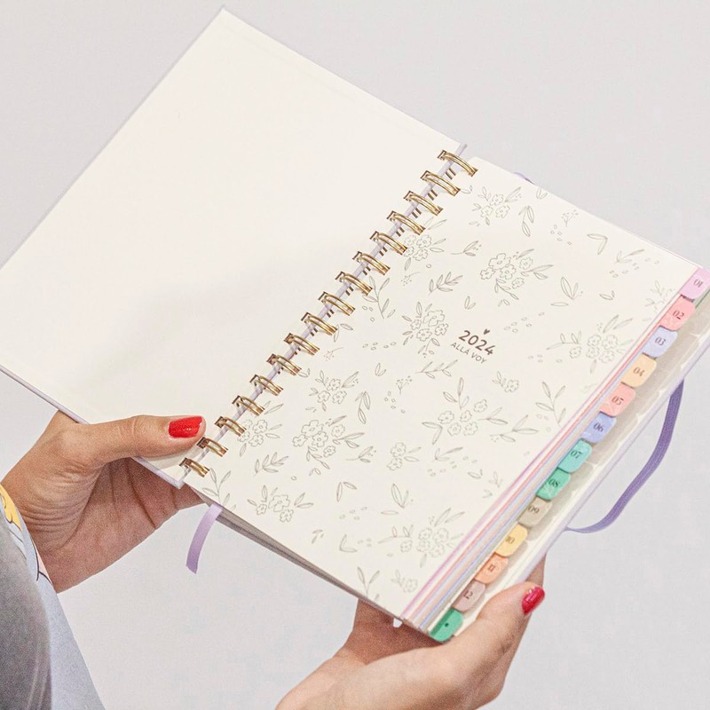 - Product size: 15.5 x 21 cm. Concealed outer lids with gold design and stamp. 192 inside pages 120g A5 with divider tape. Week to view Elastic band closure. Two sheets of coloured stickers. Inner pocket for storing anything you want. Also available in Powder Green and Black Night.