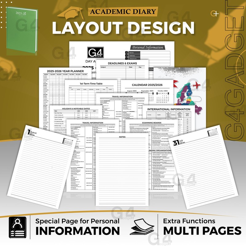 - Academic Year Layout - The diary covers the entire academic year, starting from August 2025 to July 2026, making it the perfect companion for students who want to stay organized throughout the academic year.