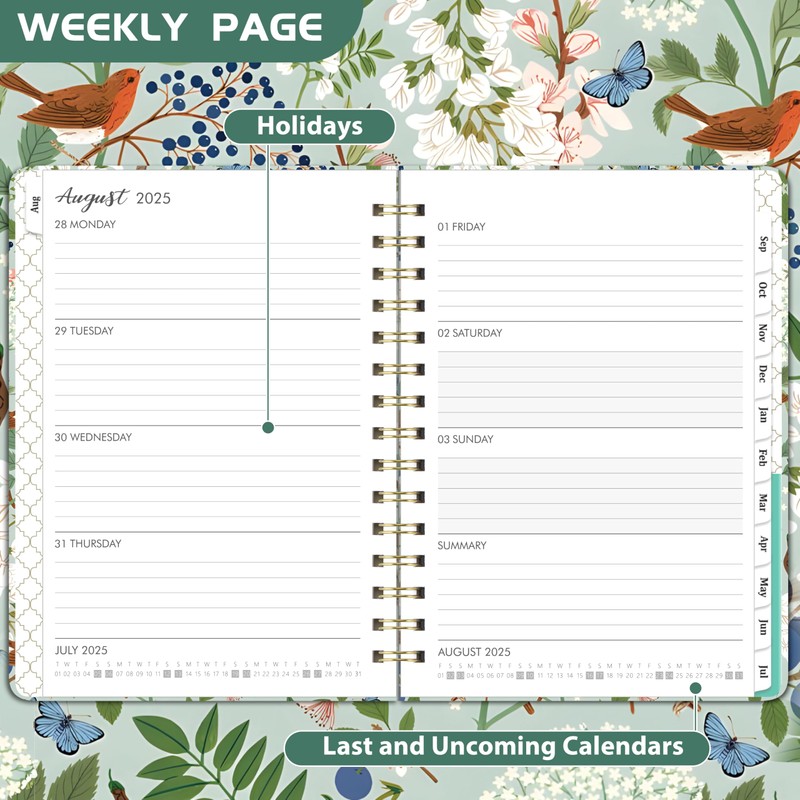 - 🐦 Plan Your Week & Days - Each weekly page of this 2025-2026 diary has lots of lined writing space for your appointments, activities or events, etc. Marked holidays, current and next month reference for quick tracking your dates and long-term planning.