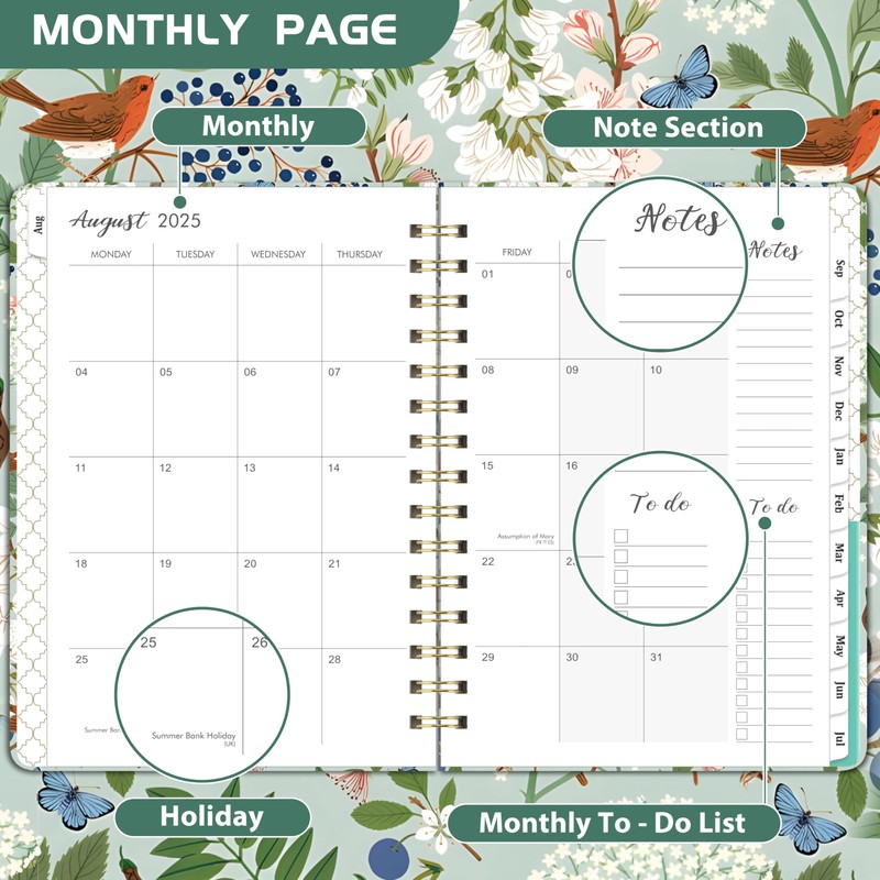 - 🐦 2025-2026 Academic Diary - From August 2025 - July 2026, this academic diary 2025-2026 week to view features 12 months of weekly and monthly pages, offering ample writing space for an easy mid year planning and organizing.