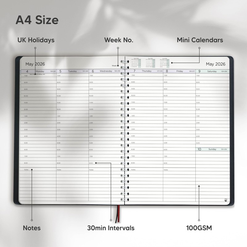 • Improve Time Management - Get organised with a mid year diary 2025-2026. After planning your week, one quick glance at your A4 academic diary week to view will set your mind at ease.