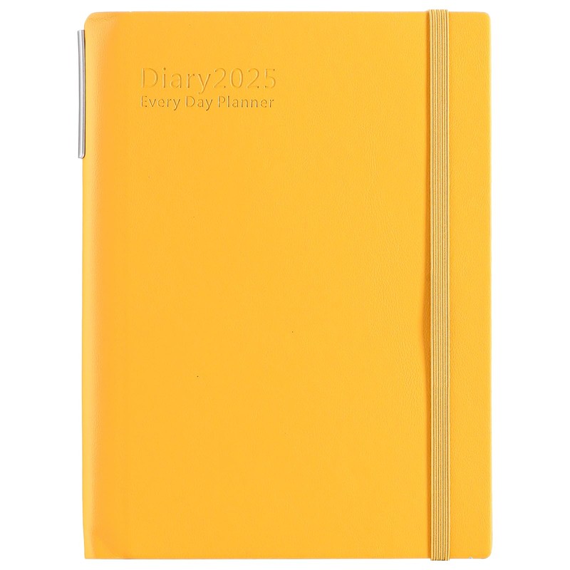 Academic Diary 2025,Diary 2025 A5 Day Per Page from Jan 2025 to Dec 2025, Elegant Hardcover Organizer Planner with Pen,Inner Pocket,Colorful Monthly Tab,Bookmarks,Elastic Closure (Yellow)
