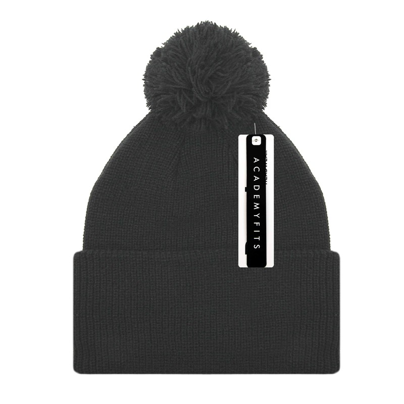 AcademyFits Pom Pom Knit Warm Ultra Soft Winter Beanie Made Adjustable Fit Men Beanie Women Beanie Unisex Design Cuffed Beanie (Charcoal)