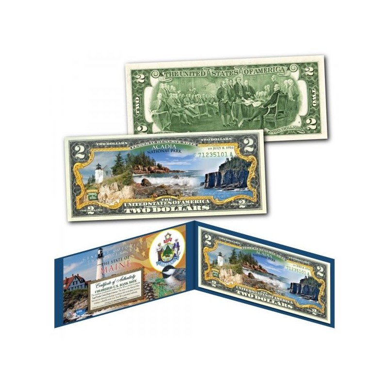 Acadia National Park Maine Uncirculated $2 Dollar Bill Special Edition Collectible Display Holder and Certificate