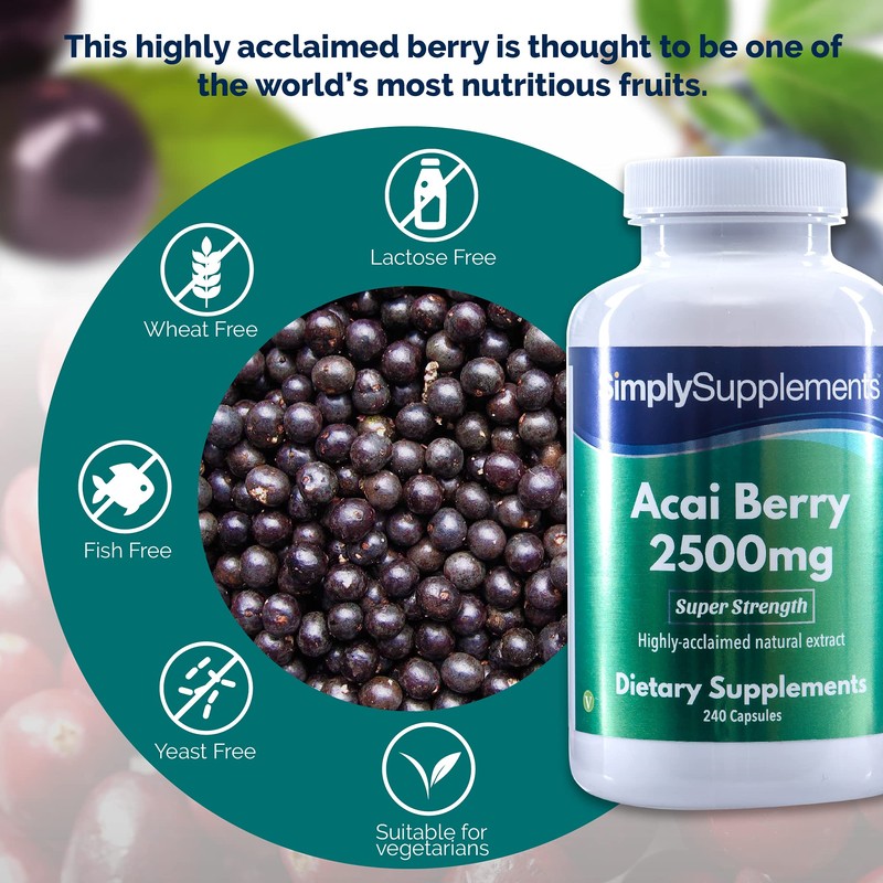 Acai Berry 2500mg | Vegan & Vegetarian Friendly | Manufactured in The UK | 240 Capsules