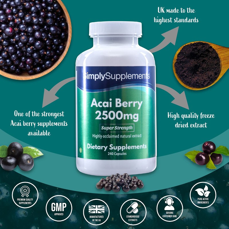 - HIGH QUALITY ACAI BERRY SUPPLEMENTS - This is one of the strongest Acai Berry supplements in the UK. Our super strength Acai Berry capsules are produced using an advanced freeze-dried technique, which captures and preserves all the nutrients in the berries. Our nutritional experts advise consumers to take one to two capsules before the main meal of the day. Each easy to swallow capsule can also be pulled apart and added to food or smoothies if preferred.