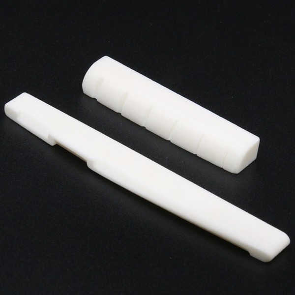 • Package Include: 1 x guitar bone nut, 1 x guitar bone saddle. guitar nut size: 1.69x0.24x0.35inches(43x6x9mm). guitar saddle size: 2.83x0.11x0.33inches(72x3x8.5mm)