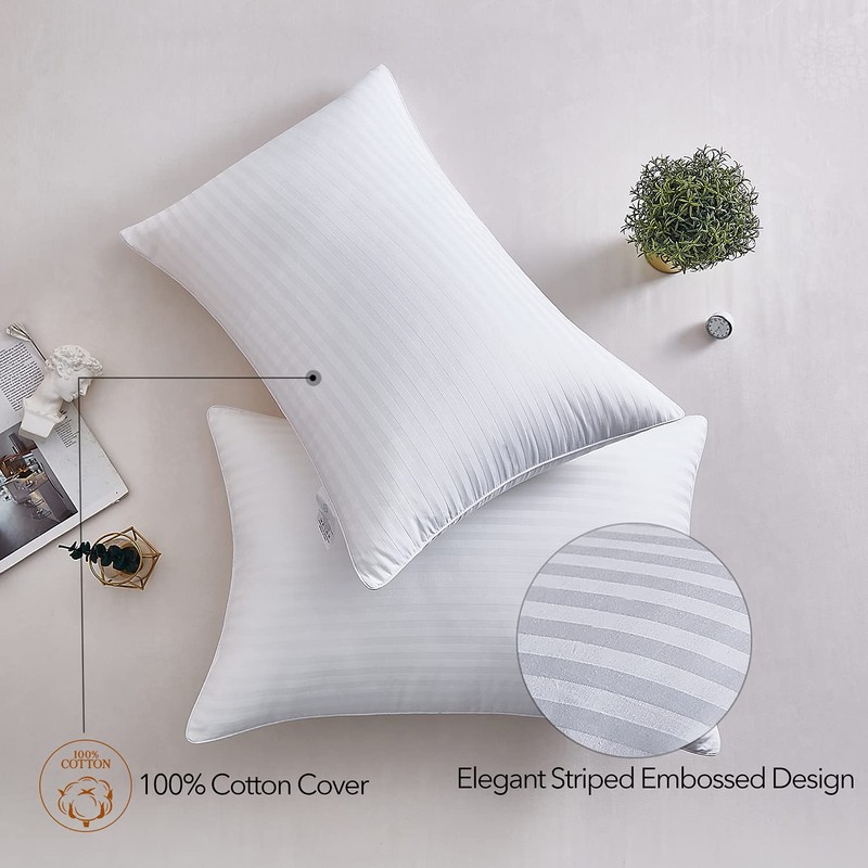 - Sleep Better with Cooling Pillows: The bed pillow cover is made of premium cotton to stay soft, breathable, and dry. No matter what kind of sleeping positions you prefer, you can always get the experience five-star hotel luxury at home every night. Also our down-like fill is engineered to stay in place, giving your head and neck the support you need to sleep peacefully throughout the night.