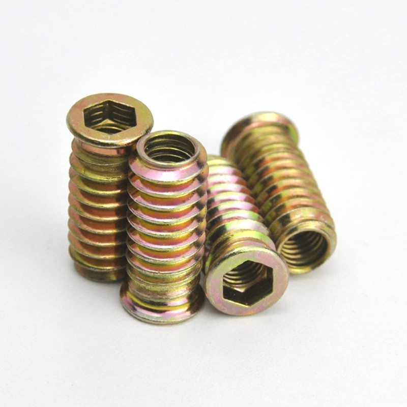 These wood insert nuts feature threaded designs, the external protrusions bite into the wood, providing superior holding power and preventing the nuts from either turning or pulling out.