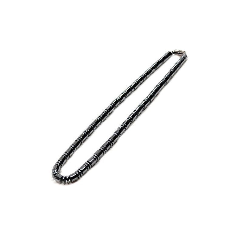 Accents Kingdom ® introduces a stylish magnetic hematite necklace, the piece features magnetic hematite drum beads, magnetic hematite accents beads and a strong magnetic clasp enclosure which will hold this fabulous piece in style. Each magnetic hematite bead measures Approx. 600-700 gauss power. It is measured 1/4" in width. It looks absolutely gorgeous with a pair of jeans or most elegant evening gown, fits perfectly for both men and women. It is truely a perfect gift item for any occasions.