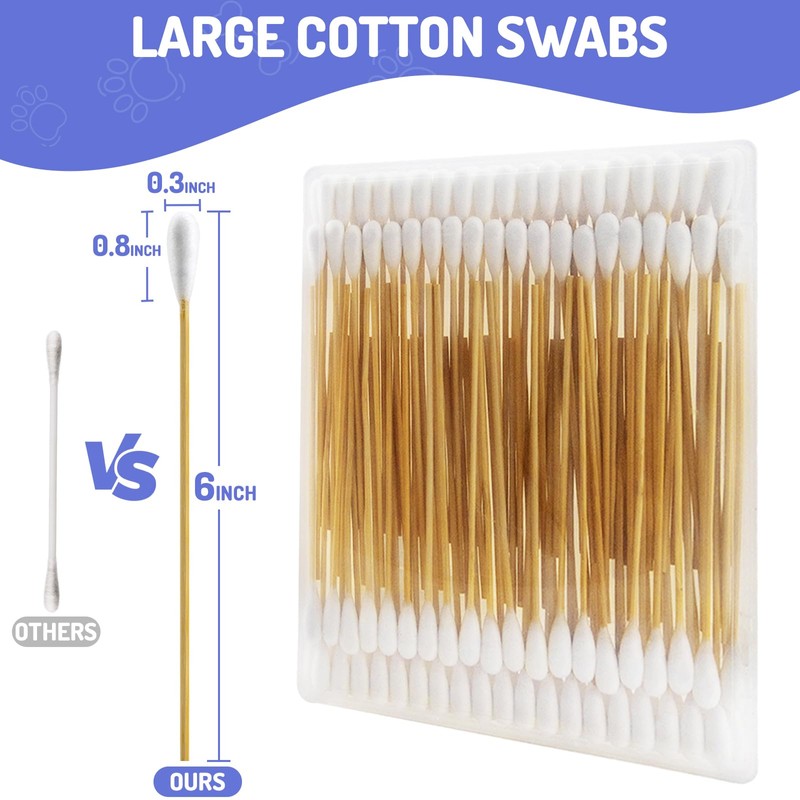 - [HIGH QUALITY MATERIAL] Our large dog cotton swabs are made of natural cotton and sturdy, dog ear cleaning swabs have tight yet soft heads, resisting unraveling. They make the job easier and the dogs don’t mind them