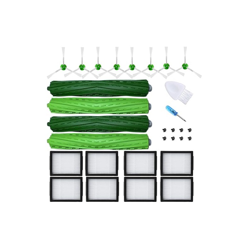 🌟 ⭐ Accesorios de piezas de repuesto para iRobot Roomba evo Combo e5 e6 i1 i2 i3 i4 i5 i6 i7 i8 j5 j7 j8 Plus, 2 juegos de cepillos de goma, 8 filtros/HEPA 8 cepillos laterales ⭐ 🌟
