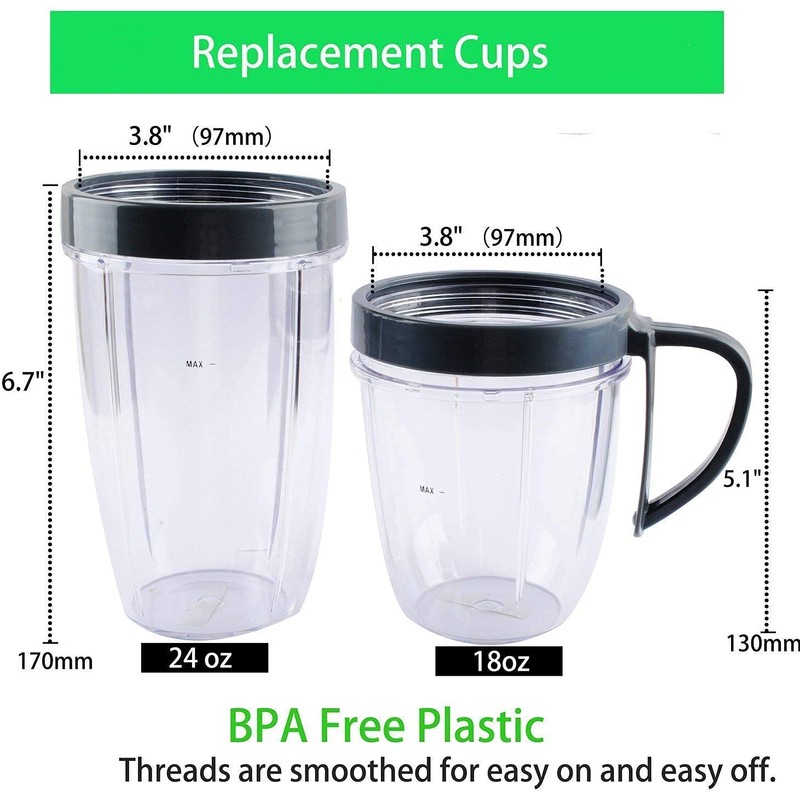 - Package Include: 1 x New and Improved Extractor Blade,2 x Resealable Lid ,1 x Tall Cup (680ML/ 24 OZ),1 x Short Cup (511ML/ 18 OZ),1 x Lid Ring,1 x Handled Lid Ring,1 x Rubber Base Gear,2 x Gaskets,1 x Top Gear,3 x Shock Pads