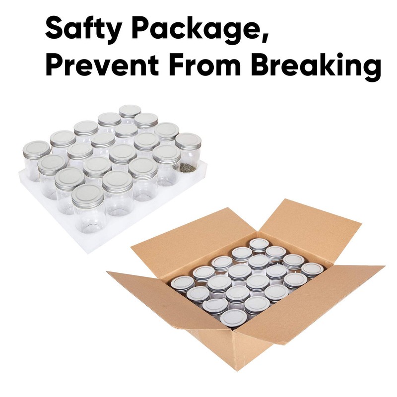 - Food Grade: Each mason jar is made of food grade materials, great for food storage. Silver lids are Lab Certified Corrosion-Resistant material. Durable glass last for years.