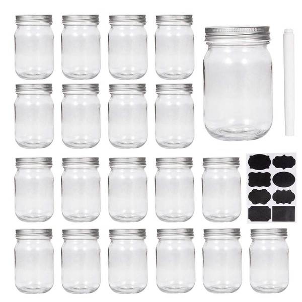 - Set Include: Case of 20 jars and sliver lids, free chalkboard stickers and one pen for labeling, mark your own jars! 4.72 inches tall, 2.55 inches on cap, 2.55 inches at flat sides, hold 12 oz.