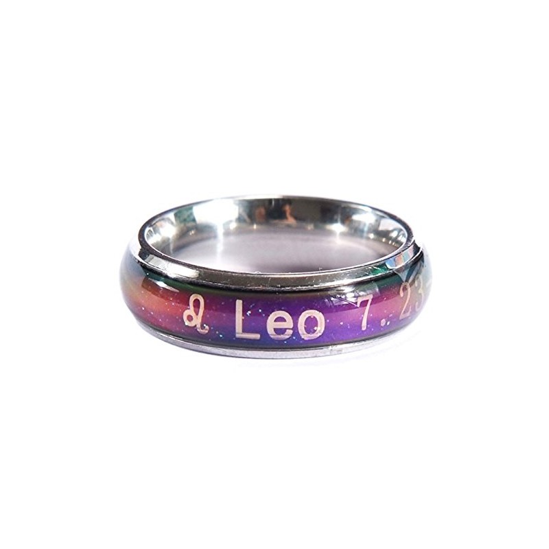 ACCHEN Mood Ring 12 Constellation Changing Color Emotion Feeling Finger Ring with Box (Leo)