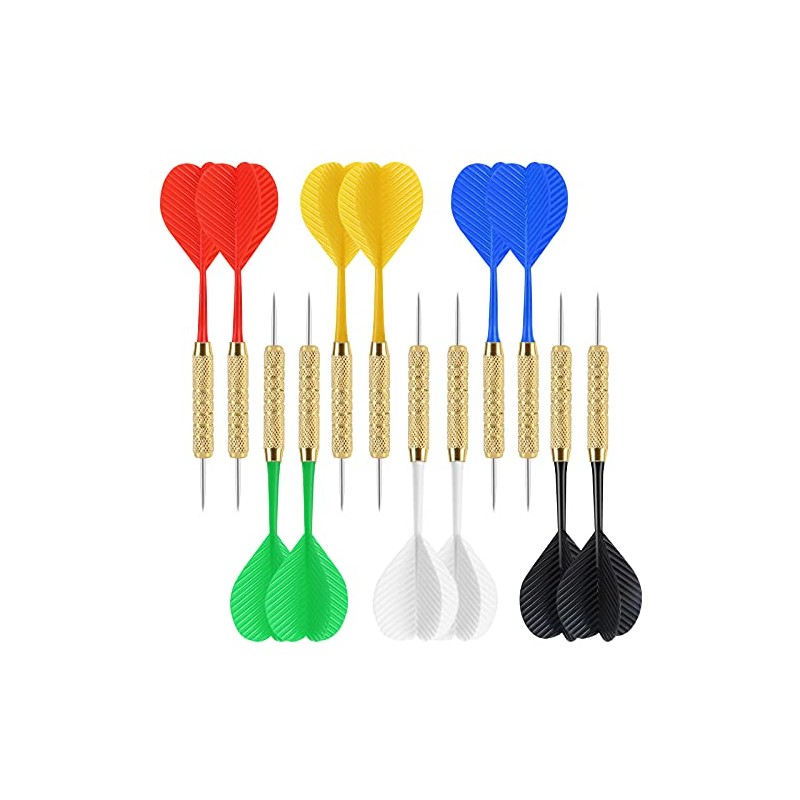 • Package Include: 12 pc steel tip darts. The flights come with 2 of each color: Red, Black, White, Yellow, Blue and Green.