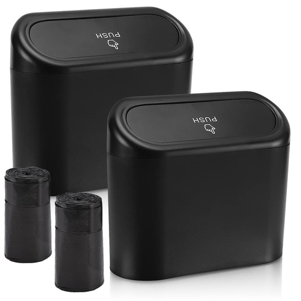 Accmor Accmor Car Trash Can with Lid, Mini Auto Dustbin Garbage Organizer Holder 2 Packs, Automotive Storage Container Bin with 60 Pcs Bags for Vehicle, Home, Office