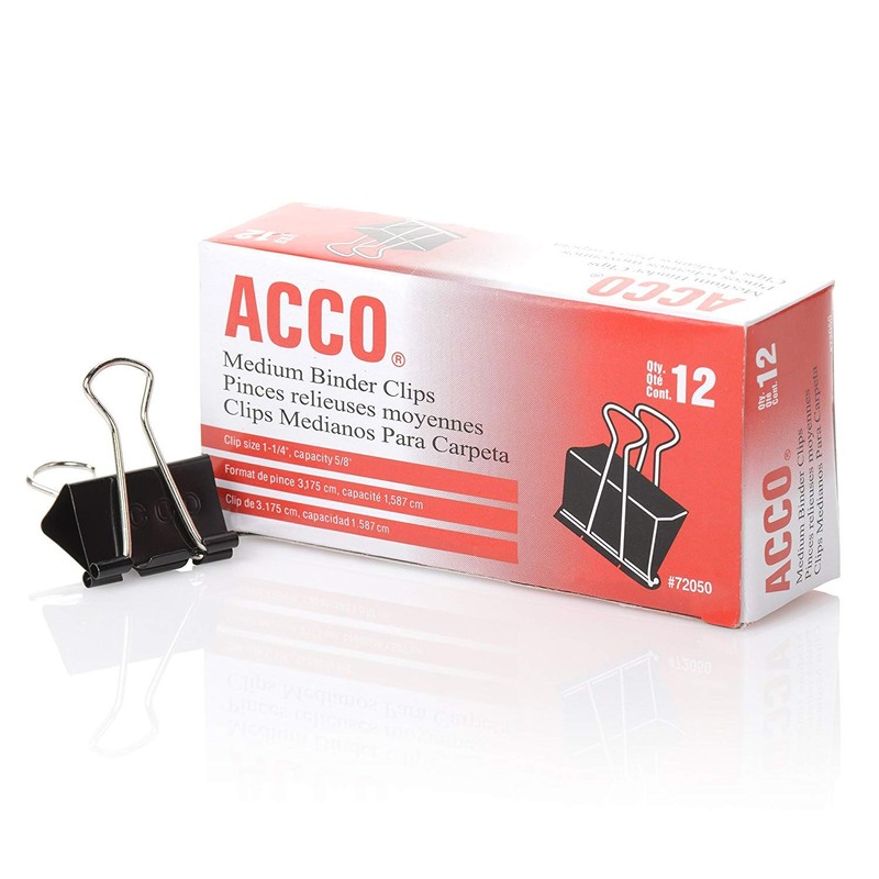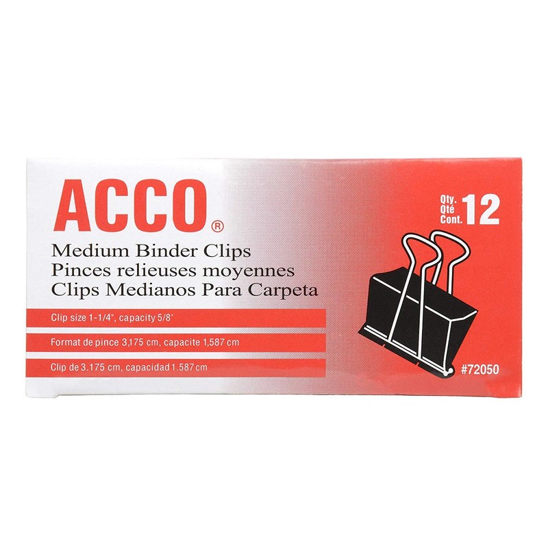 ACCO Binder Clips, Medium, 12/Box, 10 Boxes (120 Clips Total) (72050)